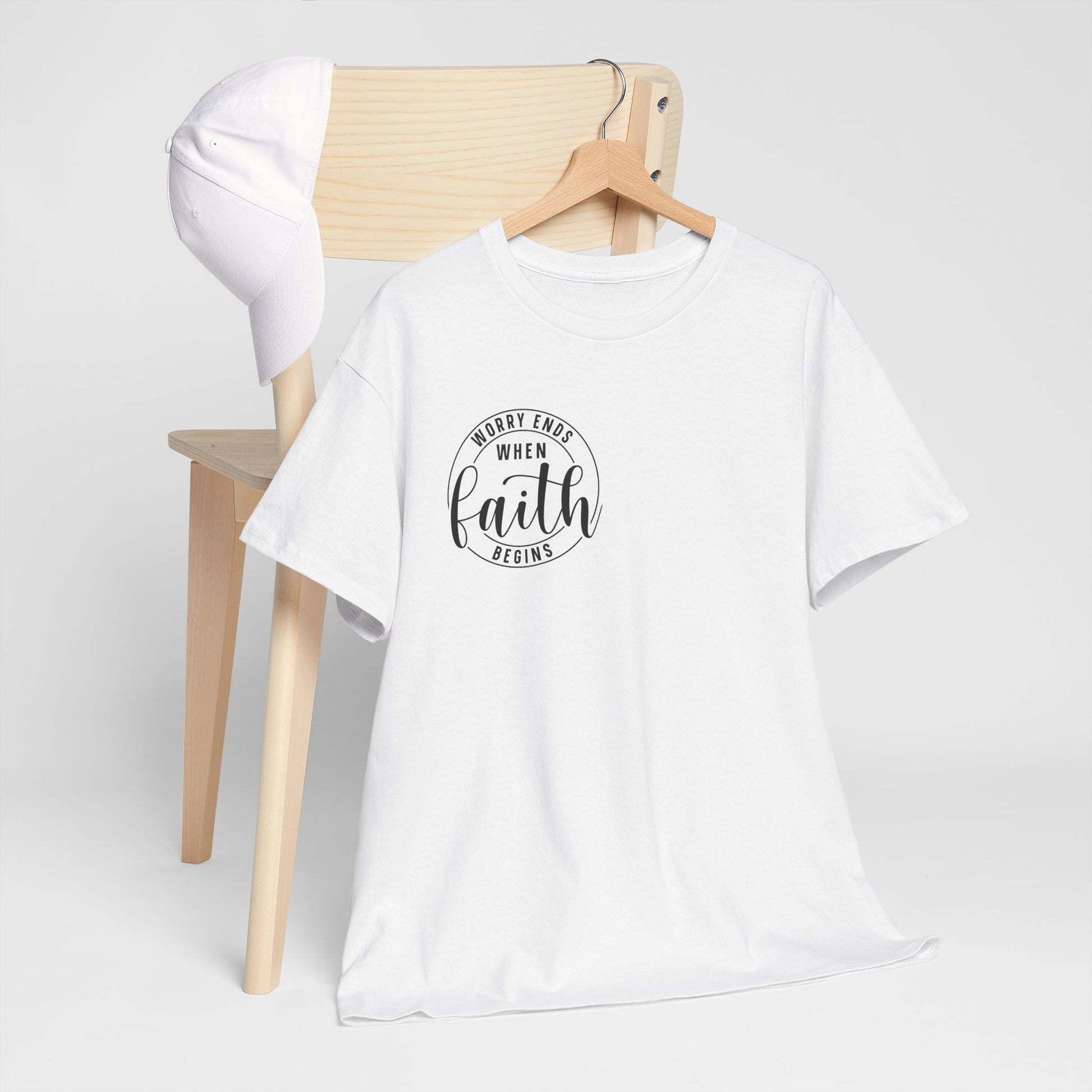 Find peace and let go of worry when Faith Begins, the perfect companion shirt for your journey in Christianity. Trust in its powerful message and let your faith guide you to a more fulfilling life. Start your path to inner peace now!